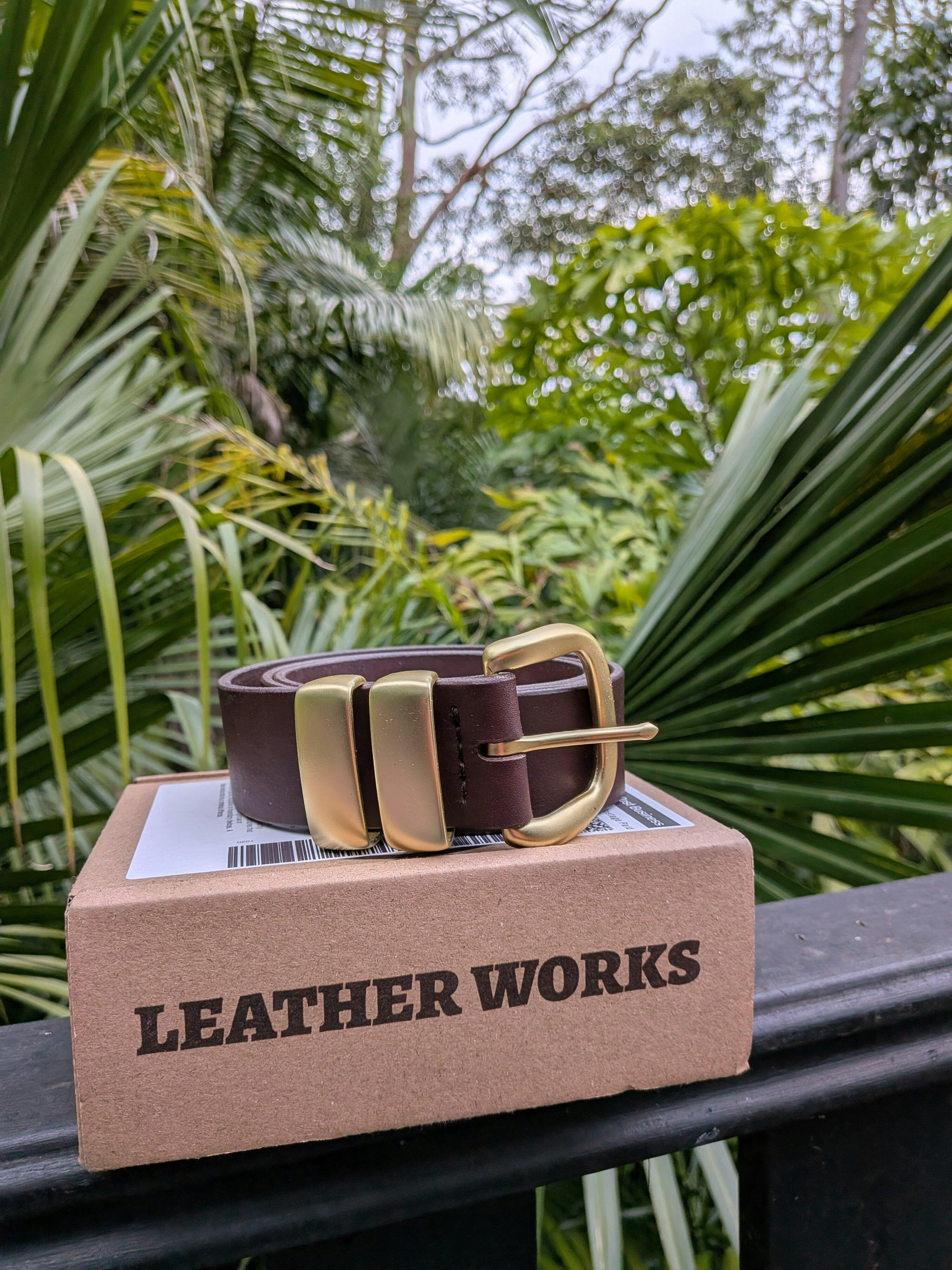 - Elegant 'Eureka Gold' buckle and double keepers